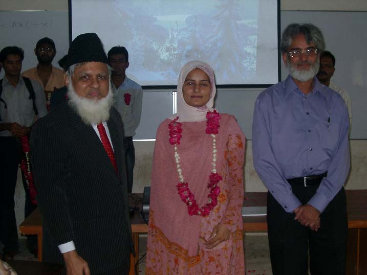Fig. 23: Pride of our department, Ms. Ambreen Kanwal, who topped the list of candidates in University of Karachi [September 2, 2006] |